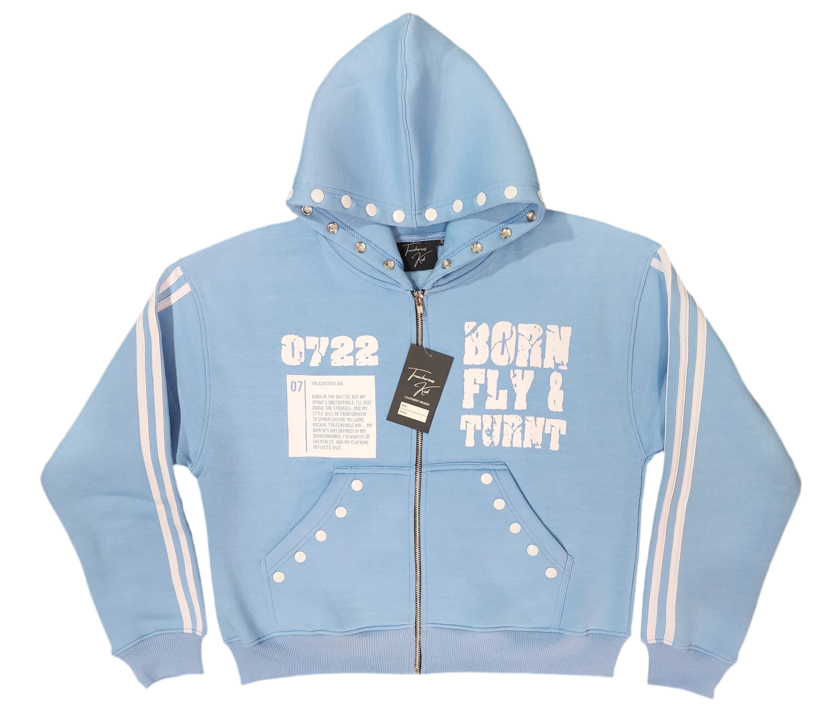 "100% cotton tracksuit. Jacket fits true to size. Pants feature a relaxed fit with flare bottoms, recommended to size up."